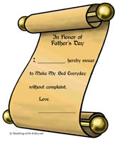 Instead of the "traditional" Father's Day Coupons, we have created the Father's Day Contract. These are similar to the coupons, but instead of "redeeming" at will, the contract states what services are promised.